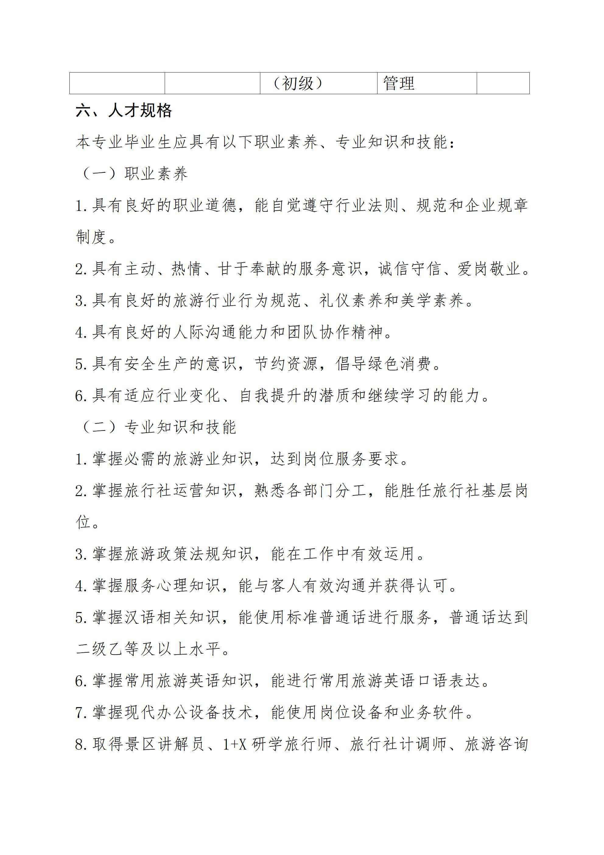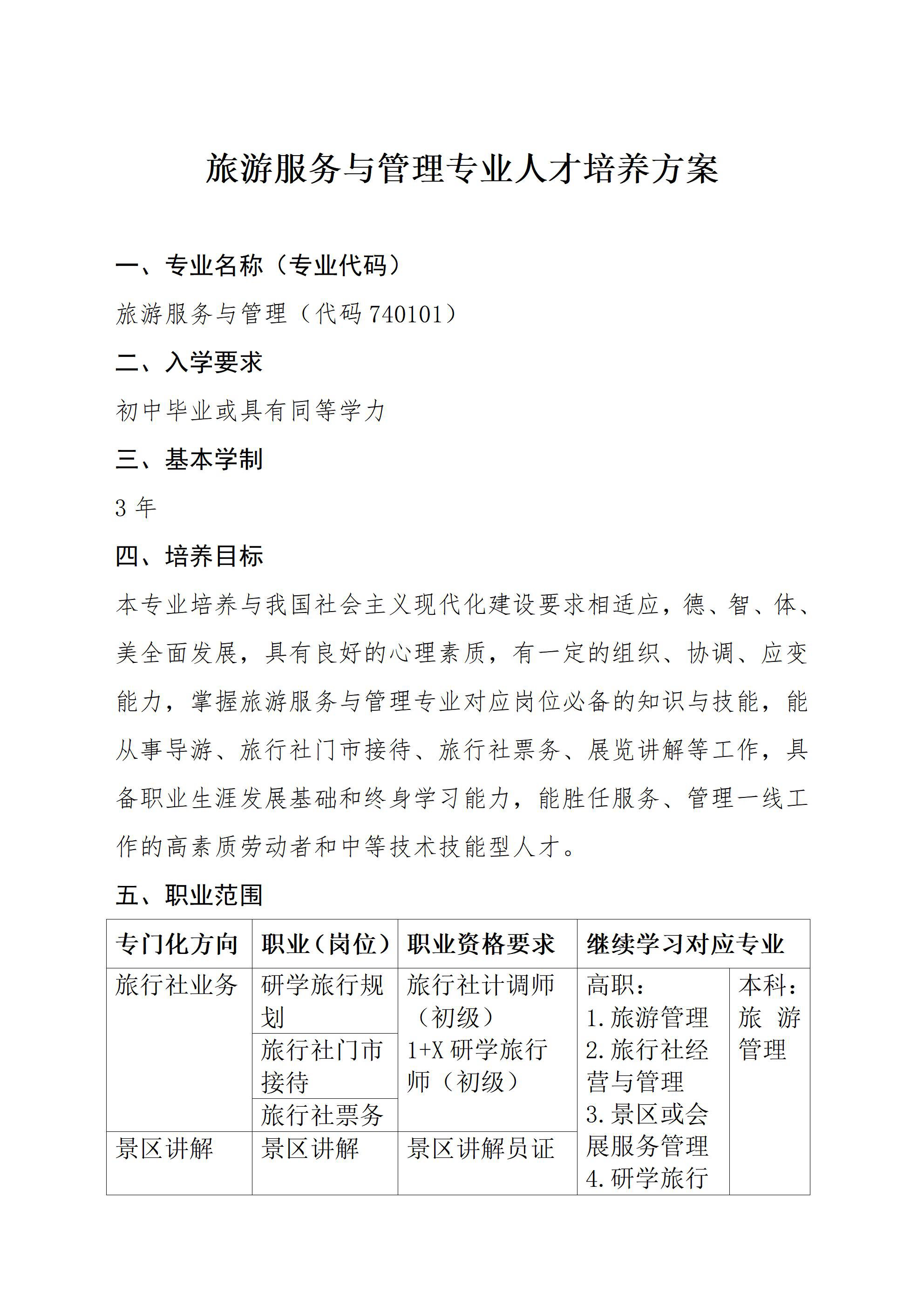 旅游服务与管理专业人才培养方案